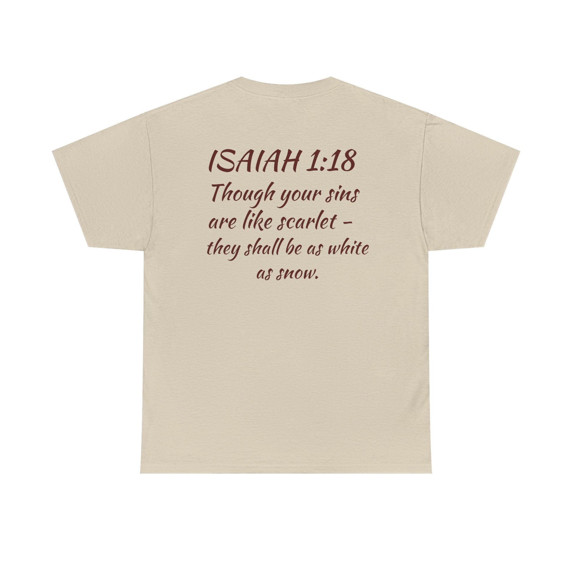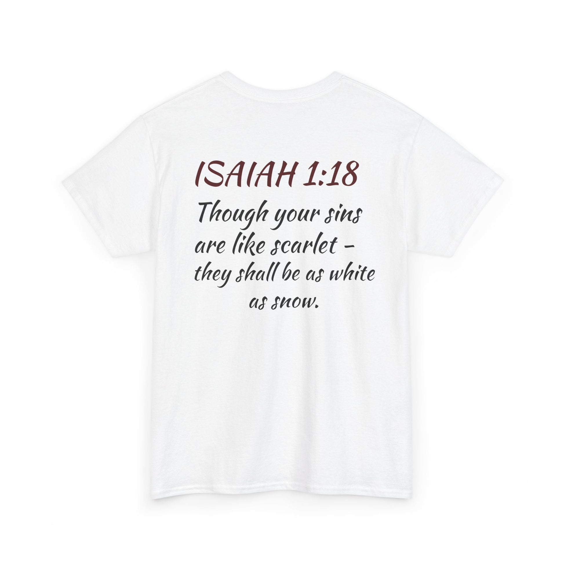 Inspired by Isaiah 1:18, these tees are more than fabric — they carry a message of grace, redemption, and new beginnings.